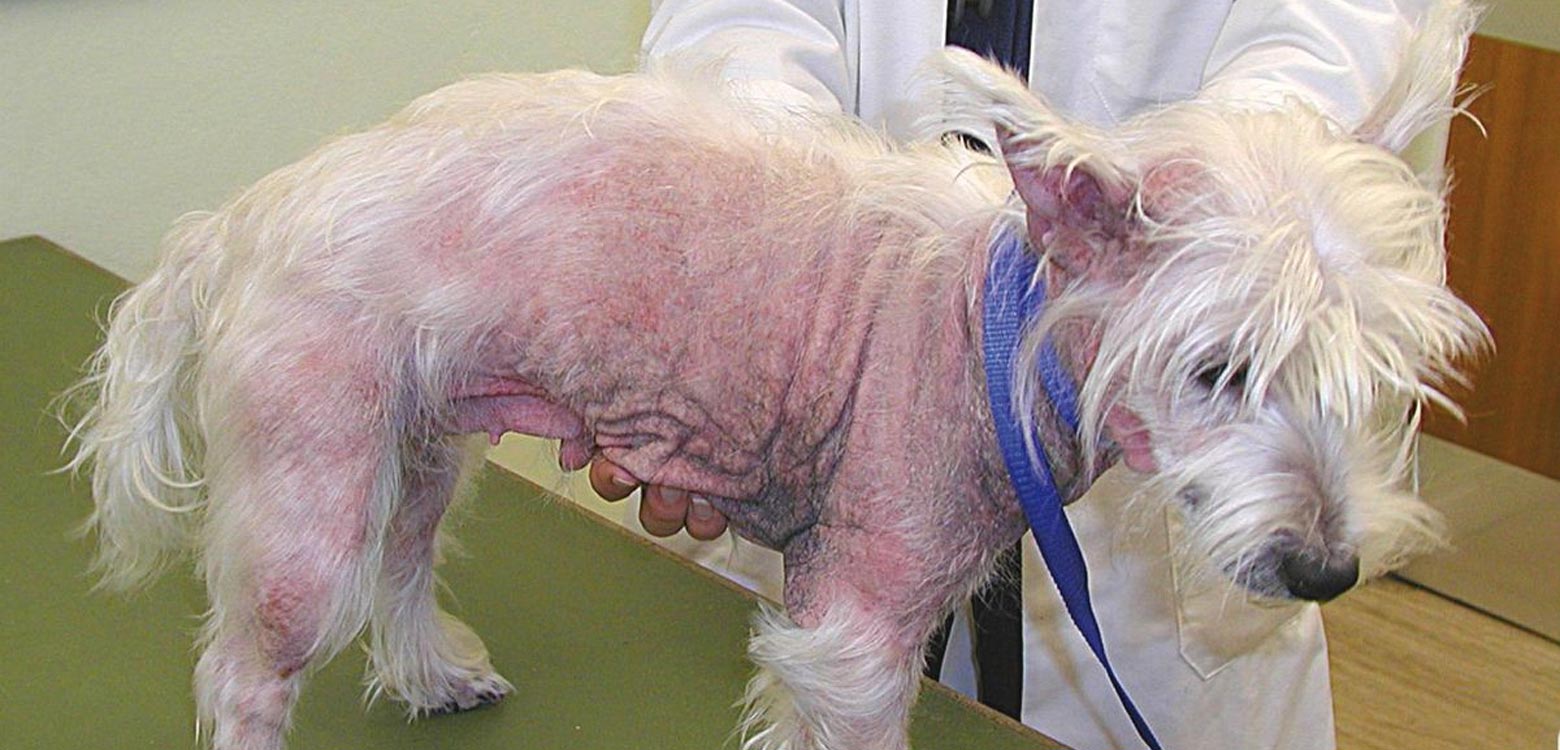 Cuando un can sufre esta enfermedad, la piel afectada muestra picores, enrojecimiento, aparición de pústulas o granos, además de oscurecimiento y resequedad.