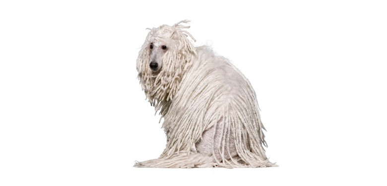 ASPECTO GENERAL: El Komondor es un perro grande y fuertemente construido. Su aspecto exterior, el de un ganador y su postura majestuosa despiertan respeto en el observador y eventualmente también miedo. No es adulador por naturaleza. El robusto cuerpo está recubierto por pelo largo, siempre tupido sin excepción, enmarañado, en mechones. Visto de perfil el cuerpo es un rectángulo echado, casi un cuadrado. Sobresaliendo sobre el cuerpo aparece la cabeza muy densamente peluda. La cola es llevada colgando con la punta doblada casi alcanzando la horizontal. El pelaje es de color marfil.