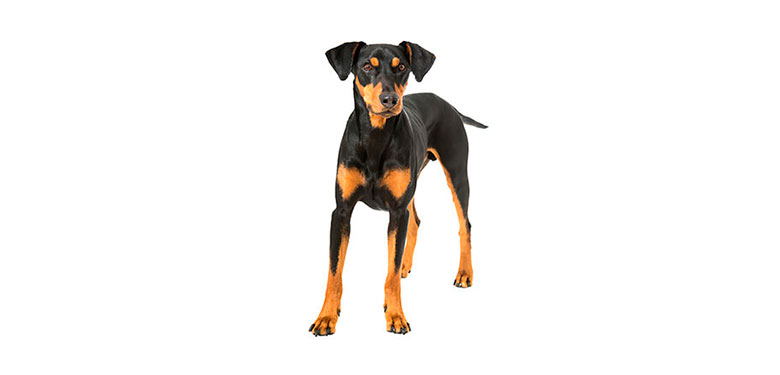 APARIENCIA GENERAL: El Pinscher alemán es de pelo corto y liso, de tamaño mediano, de presencia orgullosa, de contorno de líneas fluidas, elegante y de construcción cuadrada. Es fuerte como el Schnauzer y su bien desarrollada musculatura se evidencia claramente durante el movimiento dado su pelaje corto y liso.